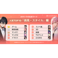 AIチャットアプリ「SynClub」、AIキャラ作成の画風・スタイルの人気ランキング TOP10を発表