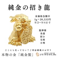 純金ブランド「JUNGOLD」は、金の日限定企画として『純金の招き龍』の予約販売を開始。価格は1グラム 20,3…