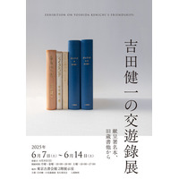 本展では『交遊録』をテーマに、吉田健一に関する著作本、翻訳本、旧蔵本、色紙、書簡、旧宅ものな…