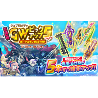 スマホ向け本格オンラインRPG『剣と魔法のログレス いにしえの女神』<期間限定を含む武器を5本ずつ確率アップ!「ジョブ別ガチャ GWピックアップ5 第2弾」販売!>