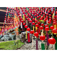 篠原一門による1000個の江戸風鈴。五行陰陽節に基づいた五色の短冊に込める願いや朱色の風鈴・音色には、…