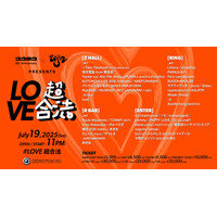 Yackle主宰イベント「合法」の9周年特別版「超合法」と、uijin主宰イベント「LOVE〇〇」による共同主宰イベント『LOVE超合法』が7/19にZEROTOKYOにて開催決定!