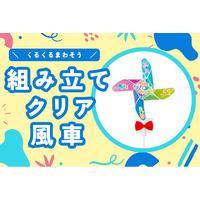 A5サイズの1枚のシートと付属パーツを組み立てて作る「組み立てクリア風車」を新商品として発表。全面フル…