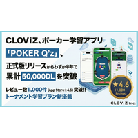 CLOViZ、ポーカー学習アプリ『POKER Q’z』、正式版リリースからわずか半年で累計50,000DLを突破