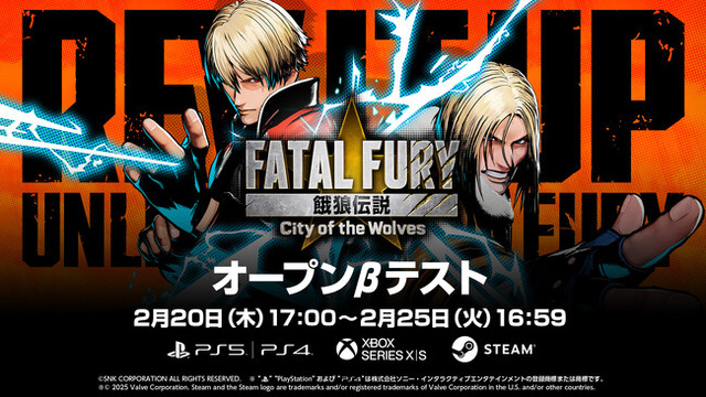 株式会社SNK (本社:大阪府大阪市、代表取締役社長:松原 健二)は、2025年4月24日(木)発売予定の新作格闘ゲーム『餓狼伝説 City of the Wolves』のオープンβテストを2025年2月20日(木)から2月25日(火)に実施することをお知らせいたします。