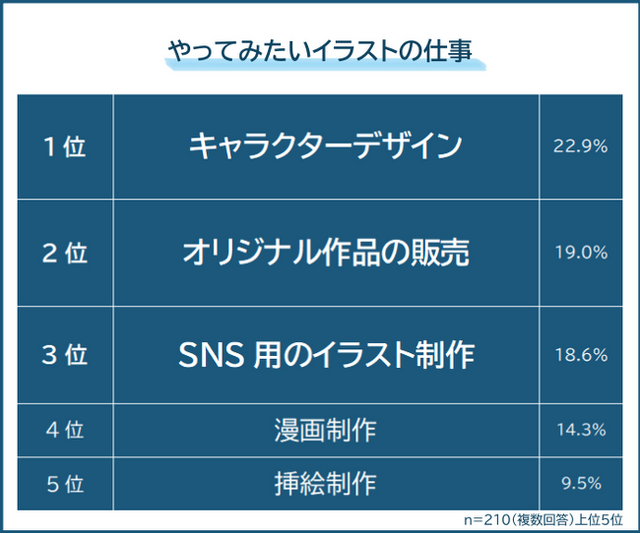 やってみたいイラストの仕事1位は「キャラクターデザイン」