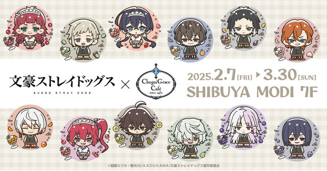 キャラクターグッズの商品企画・製作・販売を行う中外鉱業株式会社コンテンツ部は、「TVアニメ『文豪ストレイドッグス』 × Chugai Grace Cafe【渋谷モディ】」コラボカフェを開催します。