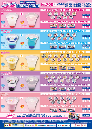 各グループをイメージした全10種類のドリンクや、アジアツアー仕様のメモリーズスナップもご用意しております!