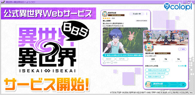 株式会社コロプラ(代表取締役社長 上席執行役員 CEO:宮本貴志、本社:東京都港区、以下「コロプラ」)は、公式異世界Webサービス『異世界∞異世界BBS』(いせかいいせかいびーびーえす)のサービスを本日2025年1月27日(月)に開始しております。