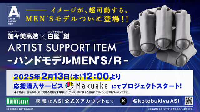株式会社壽屋(代表取締役社長:清水一行 / 本社:東京都立川市)は、2025年2月13日(木)12時より「ARTIST SUPPORT ITEM ハンドモデルMEN’S /R」を応援購入サービス「Makuake(マクアケ)」にて展開いたします。