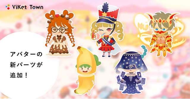 「ViKet Town(ビケットタウン)」では自分となって働くアバターが存在します。アバターには、頭、髪、目、口、服装、数種類の初期パーツから選択する事ができ、理想とする自分を生み出す事が可能です。 アバターを通してのコミュニケーションは、年齢、国籍、性別、見た目、生まれ持ったルーツによる様々な偏見をなくし、 純粋な気持ちで仲間とのプロジェクトの成功を目指す事ができます。 自分に自信がない人でも、働く新たな自分を生み出すことで、コミュニケーション能力の向上も期待でき、異空間で働くアバターは、様々なアイテムを身に着け、仲間とのコミュニケーションのきっかけともなります。今回はバレンタインのチョコレート風モチーフやマーチングバンド風のアバターパーツが新登場!ポップでかわいいデザインを楽しもう!