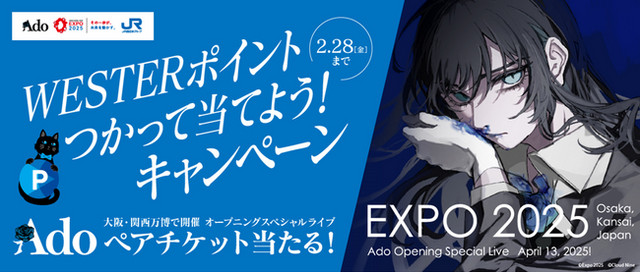 JR西日本は、大阪・関西万博の開幕日に開催される、歌い手Adoによる万博の開幕を記念した「Adoオープニングスペシャルライブ」に協賛いたします。