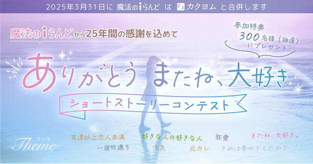 なお「魔法のiらんど」は今後、同じく自社で運営するWeb小説サイト「カクヨム」へ合併し、カクヨムサービス内の1ジャンルとして運営を続けてまいります。