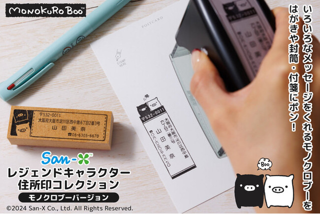 2000年代に一世を風靡した、San-X (サンエックス)のレジェンドキャラクター「モノクロブー」。「San-X レジェンドキャラクター 住所印コレクション(モノクロブーver.)」は、かわいいペアのブタのキャラクター「モノクロブー」に癒されることまちがいなしの、オーダーメイドの住所印です。