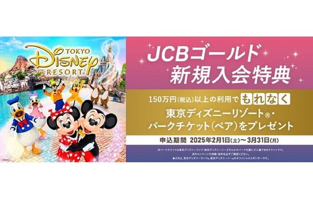 株式会社ジェーシービー(本社:東京都港区、代表取締役兼執行役員社長:二重 孝好、以下:JCB)は、2025年2月1日(土)から3月31日(月)の期間中、JCBゴールドへ新規入会されたお客様を対象に、「東京ディズニーリゾート(R)・パークチケット(ペア)プレゼントキャンペーン」を実施します。