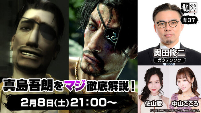 株式会社セガは、「龍が如く」シリーズを手掛ける「龍が如くスタジオ」の最新情報をお伝えする番組「龍スタTV」の第37回を、2025年2月8日(土)21:00よりYouTube Live、ニコニコ生放送にて配信することを決定しました。