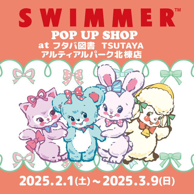 アイピーフォー株式会社(本社:東京都豊島区、代表取締役社長:小濱 剛)がライセンスを取り扱っている大人気雑貨ブランド「SWIMMER」は、フタバ図書 TSUTAYA アルティアルパーク北棟店(広島県)にてPOP UP SHOPを開催します!期間は2025年2月1日(土)~2025年3月9日(日)まで♪