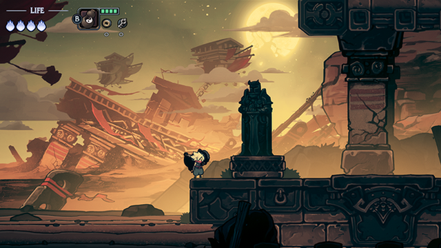 手書きスタイルのイラストで描かれた空想の世界を舞台にした壮大なストーリーと、見下ろし型のマップと横スクロールが融合した探索型2.5DアクションRPGです。王道メトロイドヴァニアならではの自由度の高い探索要素をはじめ、ダンジョンにつながるマップや拠点を中心としたRPG的なインタラクションや成長要素、珍武器「幻影の柱」から繰り出される多彩なバトルアクションが楽しめる作品となっています。