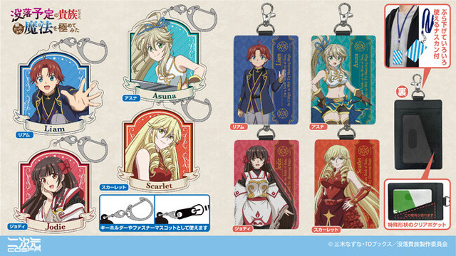 リアム、アスナ、ジョディ、スカーレット、それぞれの「アクリルマルチキーホルダー」と「パスケース」が二次元コスパから登場。