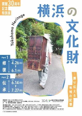 開館30周年を迎える横浜市歴史博物館では、開館以来、横浜市域の文化財を調査し、その歴史的・美術的・文化的価値を調査して展示などで成果を普及する一方で、文化財自体を保護または修復し、適切な環境下で未来に伝える保存に、地域の人々とともにかかわってきました。本展ではPart1「修復」・Part2「伝承」に分けて、文化財の修復技術やそれにかかわる人々、また文化財を伝える環境や伝える地域について、資料をもとに紹介します。