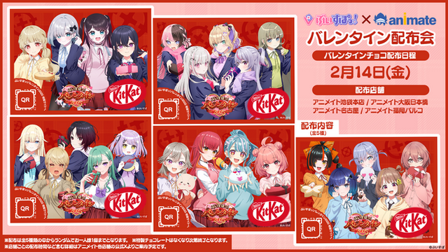 次世代 Virtual esports Project「ぶいすぽっ!」は、2025年2月14日(金)に東京・名古屋・大阪・福岡のアニメイト4店舗にて、バレンタインチョコとして、オリジナルパッケージの「キットカット」を無料配布いたします。