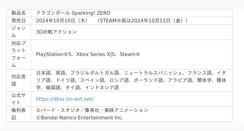 ※2 2024年10月15日(火)発表:「ドラゴンボールZ Sparking!」シリーズ最新作 『ドラゴンボール Sparking! ZERO』 発売24時間で世界累計販売本数300万本を突破