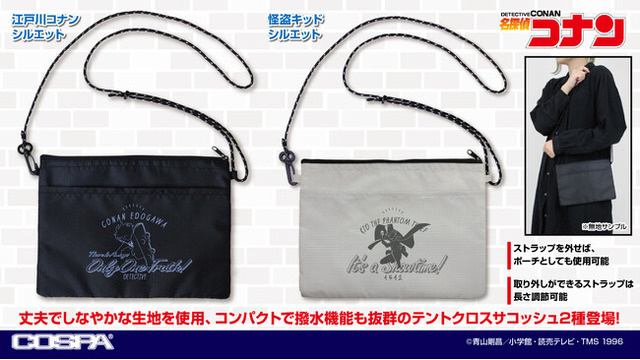 『名探偵コナン』より、「江戸川コナン」と「怪盗キッド」それぞれのシルエットをデザインした「テントクロスサコッシュ」がCOSPA(コスパ)から登場。