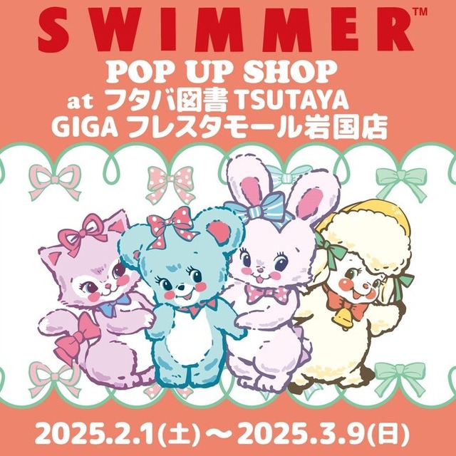 アイピーフォー株式会社(本社:東京都豊島区、代表取締役社長:小濱 剛)がライセンスを取り扱っている大人気雑貨ブランド「SWIMMER」のPOP UP SHOPをフタバ図書 TSUTAYA GIGAフレスタモール岩国店で開催中!期間は2025年3月9日(日)までです!