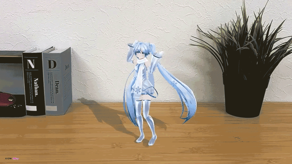 スマートフォンやMRデバイスを活用してキャラクターの表情・ポーズ・サイズを自由に変更し、ご自宅に配置することが可能です。