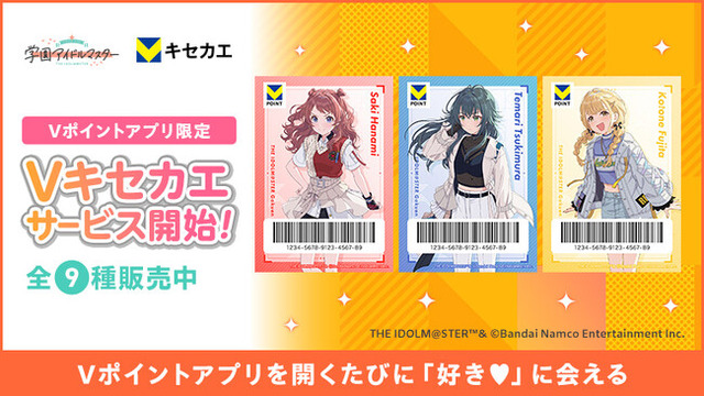 CCCMKホールディングス株式会社(本社:東京都渋谷区、代表取締役社長兼CEO:高橋誉則)は、Vポイントアプリの「モバイルVカード」を好きなデザインに着せかえできる「Vキセカエ」(https://ip.tsite.jp/guide)において、『学園アイドルマスター』のキービジュアルに登場する9人のアイドルたちを一人ひとり使用したデザイン全9種を、2025年2月10日(月)から2026年2月10日(火)まで販売いたします。