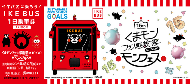 WILLER(代表:村瀬 茂高)は、2025年2月22日(土)・23日(日)の2日間池袋で開催される「くまモンファン感謝祭2025 in TOKYO ~モンフェス~」の連動企画として、「IKEBUS」と熊本県の営業部長兼しあわせ部長「くまモン」が池袋のまちを盛り上げるコラボ企画を、2月22日(土)~3月12日(水)までの期間限定で実施します。