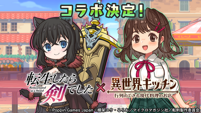 ポッピンゲームズジャパン株式会社が開発する、Android/iOS向け完全新作スマートフォンゲーム『異世界キッチン 行列のできる現代料理のお店』は、TVアニメ『転生したら剣でした』とのコラボイベントを開催することをお知らせいたします。また、コラボ開催決定を記念して、異世界キッチン公式Xアカウントにてコラボ開催記念キャンペーンを実施いたします。