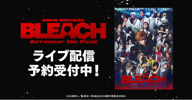 合同会社DMM.com(本社:東京都港区、会長 兼 CEO:亀山敬司 以下「DMM」)は「ROCK MUSICAL BLEACH」~Arrancar the Final~の2025年3月9日(日)17:00大千秋楽公演を「DMM TV」にて独占ライブ配信いたします。2月24日(月・休)よりDMM TV特設サイトにてライブ配信の予約販売を開始しています。ライブ配信は公演終了後も楽しめる見逃し配信付きです。