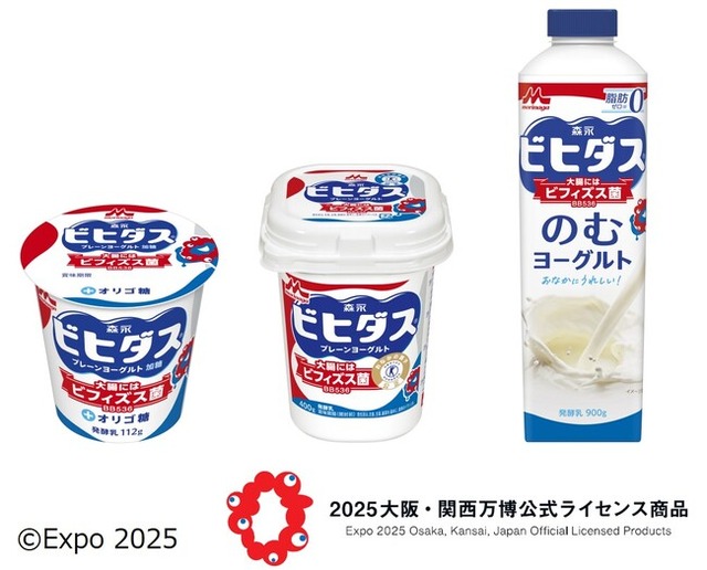 森永乳業は、2025年日本国際博覧会(以下、大阪・関西万博)の“大阪ヘルスケアパビリオン”にて、「ビフィズス菌でスーパーヒューマン」を展示テーマに出展します。このたび、開催期間中の機運を醸成したいという想いから、大阪・関西万博の公式キャラクター「ミャクミャク」がパッケージにデザインされた、「ビヒダス ヨーグルト」シリーズのうち3品を4月14日(月)週より順次、全国で期間限定発売します。