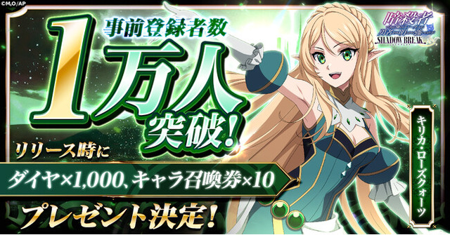 2月18日に情報初お披露目となった新作放置RPG「暗殺者である俺のステータスが勇者よりも明らかに強いのだが シャドウブレイク」の事前登録者数が早くも1万人を達成!