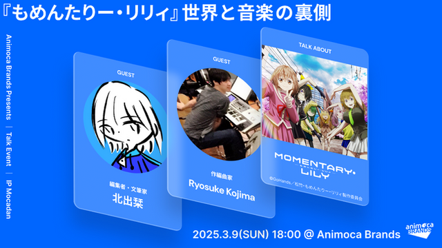 Animoca Brands Corporation Limited(以下、Animoca Brands)の戦略的子会社であるAnimoca Brands株式会社(以下、Animoca Brands Japan)は、TVアニメ『もめんたりー・リリィ』の物語と音楽の魅力を深掘りする特別イベント「『もめんたりー・リリィ』の世界と音楽」を2025年3月9日(日)18:00より開催いたします。