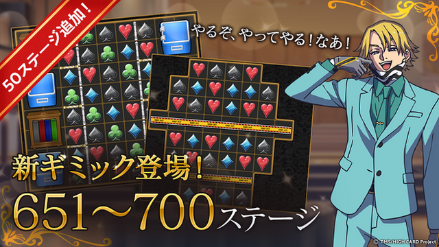 株式会社U Know Games(本社:東京都港区、代表取締役:谷口祐一郎)は、アニメ『HIGH CARD』のスマートフォン向けゲーム「HIGH CARD -Color of the Pair-」(略称:ハイカラ)にて、2月4日(水)より新ステージを追加いたしましたので、これをお知らせいたします。