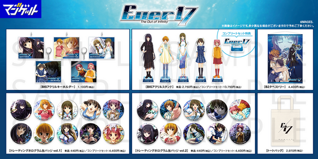 その発売を記念して、通販サイト「マジゲット」にて、BIGアクリルスタンドや缶バッジなどがラインナップする『 Ever 17 - The Out of Infinity 』のオリジナルグッズの発売を発表し、本日2月28日ひる12時より受注販売を開始しました。