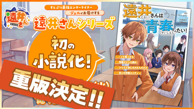 株式会社STPR (本社:東京都渋谷区 代表:柏原真人、以下STPR)は、弊社所属クリエイターのジェル(すとぷり)が原作を手掛けるショートアニメ動画シリーズ『遠井さん』初の長編小説作品である『遠井さんは青春したい! -って言ったら青春ロマンス部のツッコミ役にされたんだけど何この学園コメディ-』(STPR Books刊)について、重版が決定したことをお知らせいたします。