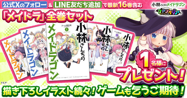 CTW株式会社は、G123の最新ゲーム「小林さんちのメイドラゴン ファンタジア」公式SNS・SMSにて、「コミック全巻セットプレゼントキャンペーン」と「5週連続LINE友だち招待キャンペーン」を開催いたします。