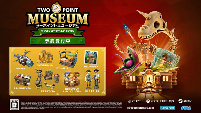 株式会社セガは、Two Point Studiosが手掛けるヘンテコ博物館経営シミュレーション『ツーポイントミュージアム』について、本日2025年2月28日(金)より、PC(Steam)およびXbox Series X|S版の先行アクセスを開始したことをお知らせいたします。