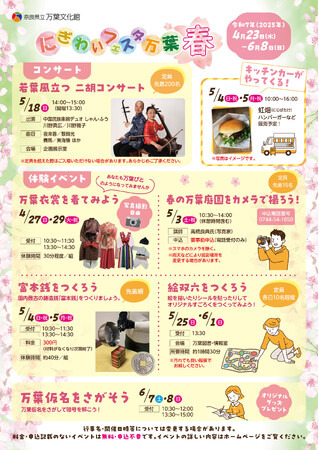 万葉文化館では4/23(水)~6/8(日)の間、「にぎわいフェスタ万葉 春」を開催します。