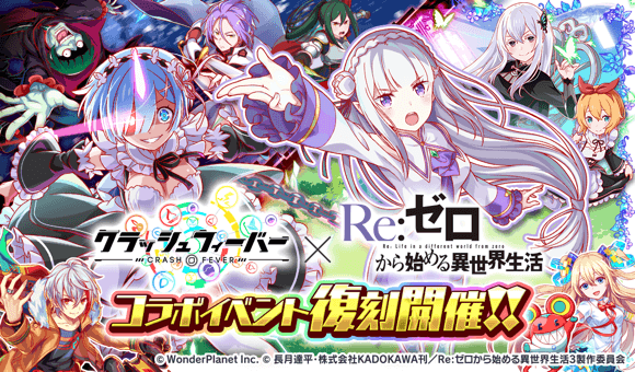 モバイルゲーム事業を行うワンダープラネット株式会社(本社:愛知県名古屋市、代表取締役社長CEO:常川友樹、東証グロース:証券コード4199、以下当社)は、iOS/Android端末向けに配信中の『クラッシュフィーバー』において、2025年3月31日(月)より、『クラッシュフィーバー』×『Re:ゼロから始める異世界生活』コラボの開催が決定したことをお知らせいたします。