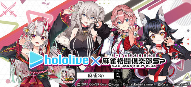 株式会社コナミアミューズメントは、モバイルゲーム『麻雀格闘倶楽部Sp(マージャンファイトクラブエスピー)』にて、カバー株式会社が運営する女性VTuberグループ「ホロライブ」とのコラボイベント「ホロライブ麻雀大大大コラボ祭 第3弾」(以下、第3弾)を3月24日(月)から開催することをお知らせします。