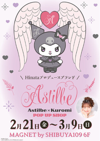 IPを活用した多彩な商品やサービスを展開する株式会社A3は、MAGNET by SHIBUYA109にて、SNS総フォロワー350万人以上の高校生クリエイターHinataちゃんによるプロデュースブランド『Astilbe』(アスチルベ)と人気キャラクター『クロミ』のコラボレーションPOP UP SHOPを開催したことをお知らせいたします。
