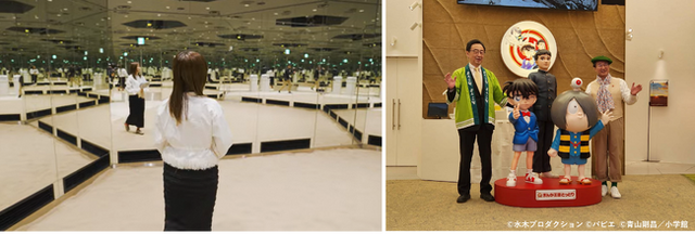 入口のエントランスでまず皆さんをお迎えするのは、「名探偵コナン」の「江戸川 コナン」、「遥かな町へ」の「中原 博史」、「ゲゲゲの鬼太郎」の「鬼太郎」の立体オブジェクト。