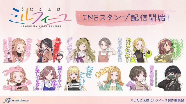 株式会社アルマビアンカは「うたごえはミルフィーユ」のLINEスタンプを配信いたします。