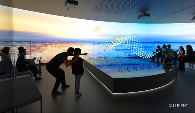 *キネティック・ライト・ビジョン(KLV : Kinetic Light Vision):極細ワイヤーで球体を吊り下げ、半透明のアクリル球体1つ1つに特殊な照明を投光。極めて滑らかなモーター制御によって上下に動かすことで、空間内に球体が浮遊しているかのような表現を可能としたLUCENT独自の空間表現システム。わずか0.2度という超挟角の特殊なフルカラー制御照明を専用に開発。繊細なモーションと、色彩豊かな照明による光の球体が作り出す世界初の空間システム。(特許出願中)