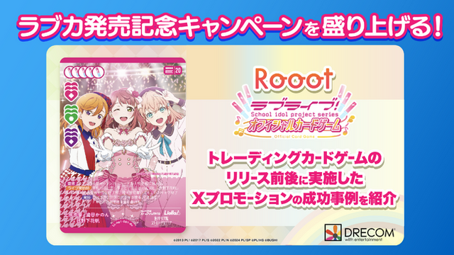 株式会社ドリコム(本社:東京都品川区、代表取締役社長:内藤 裕紀、以下ドリコム)が提供する、X向けファンコミュニティ&UGC促進サービス「Rooot(ルート)」は、『ラブライブ!シリーズ オフィシャルカードゲーム(以下、『ラブカ』)』の発売を記念したガチャプロモーションキャンペーン「ラブカ発売記念!ガチャキャンペーン」(2025年1月31日~2月9日開催)にてサービスを提供いたしました。本キャンペーンでは、「Rooot」の機能の一つであるフライングガチャ機能を活用しています。トレーディングカードゲーム(以下、TCG)の発売前のキャンペーンとして、デジタルカードを引く体験が楽しめるという斬新な施策となり、多くのファンを巻き込んだ活気のあるキャンペーンとなりました。