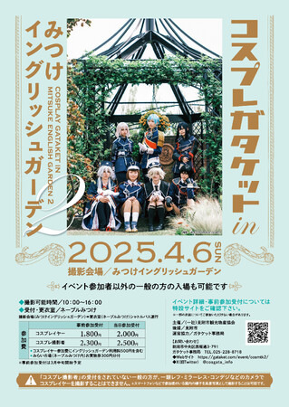 英国風庭園を舞台にしたコスプレイベント「コスプレガタケット in みつけイングリッシュガーデン」が、今年も開催決定!昨年初開催で大好評だった本イベント。春の美しい庭園を背景に、特別なコスプレ体験を楽しみませんか?